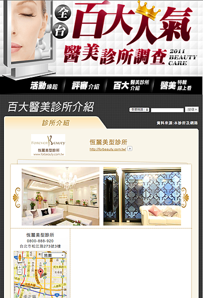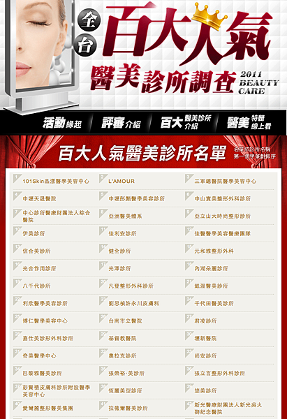 由最知名的美容流行網站fasion guide舉辦的全台灣前一百名醫美診所選拔